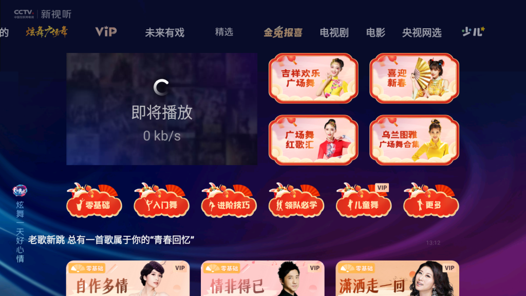 CCTV新视听炫舞TV版电视盒子是一款专为广场舞用户打造的电视盒子软件,可以在电视看观看学习各种舞蹈,整合了央视、腾讯、网络电视等等平台的优质资源,可以跟着一起学习,还有一些其它的功能比如看戏,看影视等,是一款不错的老年人的电视盒子软件,欢迎有需要的朋友前来下载。