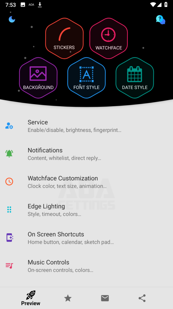 26、AOD可完全自定义,允许您设置颜色,图标,样式,字体和文本大小