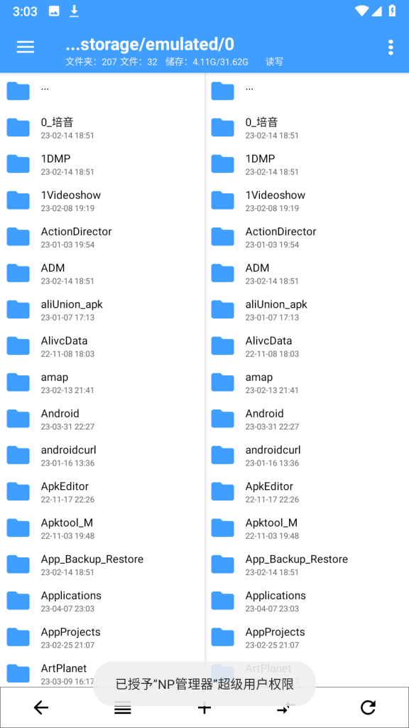 NP管理器是一款功能强大而又简单易用的手机文件管理软件,由大神[吹牛]原创开发,与我们之前使用的MT管理器几乎一样。大家都知道以前的MT管理器是用来反编译安卓软件的,也就是通过这个软件来反编译安卓软件的代码,然后再进行修改,这个软件在功能上是类似的,都是具有反编译功能的,可以让我们的用户知道很多软件的编程代码,而且这个软件还可以轻松管理手机里的很多软件。这也是用户不会对手机中的软件很 这一点,尤其是手机中自带的一些软件,用处不大,但又不能卸载,有了这个软件就可以修改软件的卸载权限,将那些垃圾软件全部卸载,非常方便。此外,该软件还提供复制、移动、删除、重命名、创建软链接、挂载分区读/写/只读等功能。它几乎给了你所有的权限来做你想做的事情。