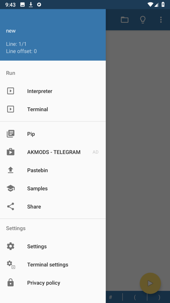 进入Pydroid3点击左上角,进入terminal: 输入 pip install 后 Paste 刚刚复制的全路径: 回车即可安装。