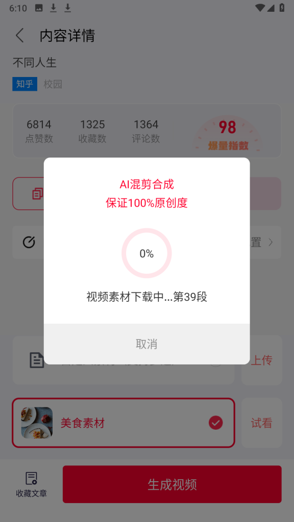 答:能过原创,通过概率99.5%以上。目前小说推文行业每日消耗素材量非常庞大,很多从业者自己在网上下载或者购买的素材用于视频制作,被判搬运的概率反而更高。推文助手采用云端24小时不间断爬取全网优质素材,结合AI帧提取等视频处理技术,目前基本能保证1000个输出视频中有3-5个被判搬运视频,被判搬运的概率非常低。