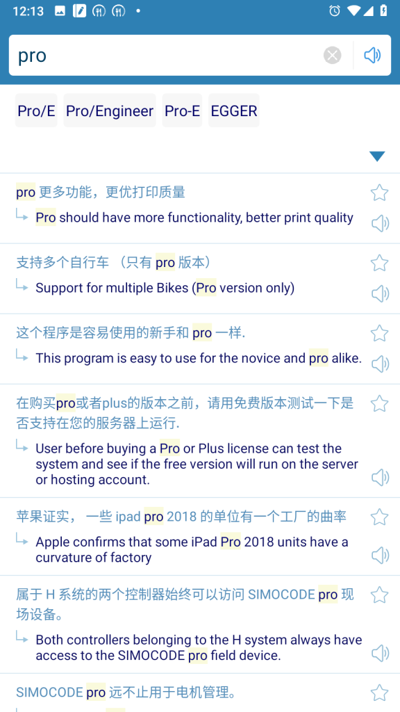 特定单词或表达的搜索结果(翻译)在从官方文件、电影字幕、产品描述中提取的真实句子中编织而成。这些例子有助于你理解翻译是如何根据上下文变化的,并选择最合适的一个来避免尴尬的错误。