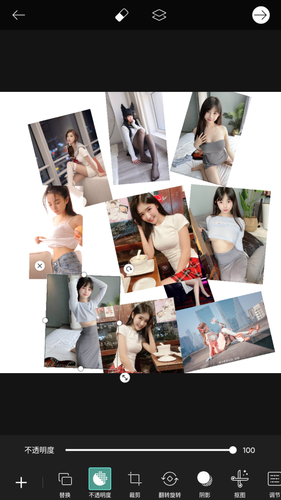 4、在图片剪辑完毕之后,就可以将其拖动摆放到合适的位置,然后点击右上角对勾按钮保存合成图片,非常方便快捷!
