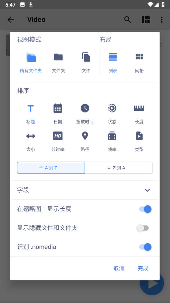 如果您仍然看不到视频文件,则文件可能被设置为隐藏。转到[设置]->[列表]并确保选中“显示隐藏的文件和文件夹”并且未选中“识别.nomedia”。更改设置后按“刷新”即可解决此问题。