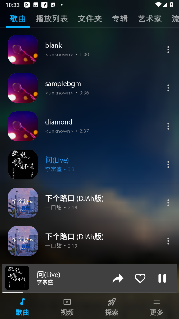 完成音乐播放器的安装后,您将轻松找到存储在设备上的歌曲。该应用程序将允许您搜索不同的标准,如播放列表、流派、文件夹等等。因此,您将能够获得完全准确的结果,并且您可以看到包含音频文件的文件夹的显示。从那里,您可以轻松打开它们。