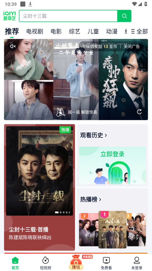 爱奇艺极速版新人登录就能领取新人红包,往往看一会儿视频就可以立马提现一点钱呢。