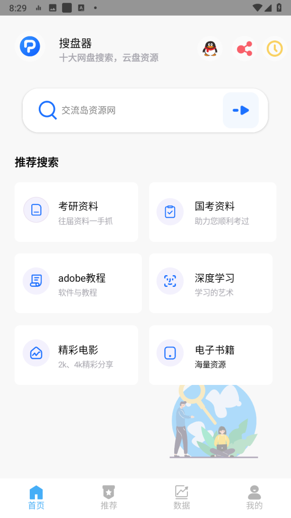 搜盘器app高级版免登陆为大家破解了免登陆,去除了广告,让你安装就可以直接使用纯净无限制的搜盘器APP,这是一款免费的手机网盘搜索神器,可以搜索一些公开分享的网盘资源,内置了多个网盘源,让你随时随地都可以找到自己想要找的资源,欢迎有需要的朋友前来下载!