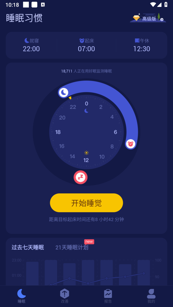 根据人体睡眠周期(人类的睡眠是由4-5个睡眠周期组成,每个周期大约90分钟),以及您的入睡和起床时间,智能推荐最佳作息时间,规律作息,开启健康睡眠。
