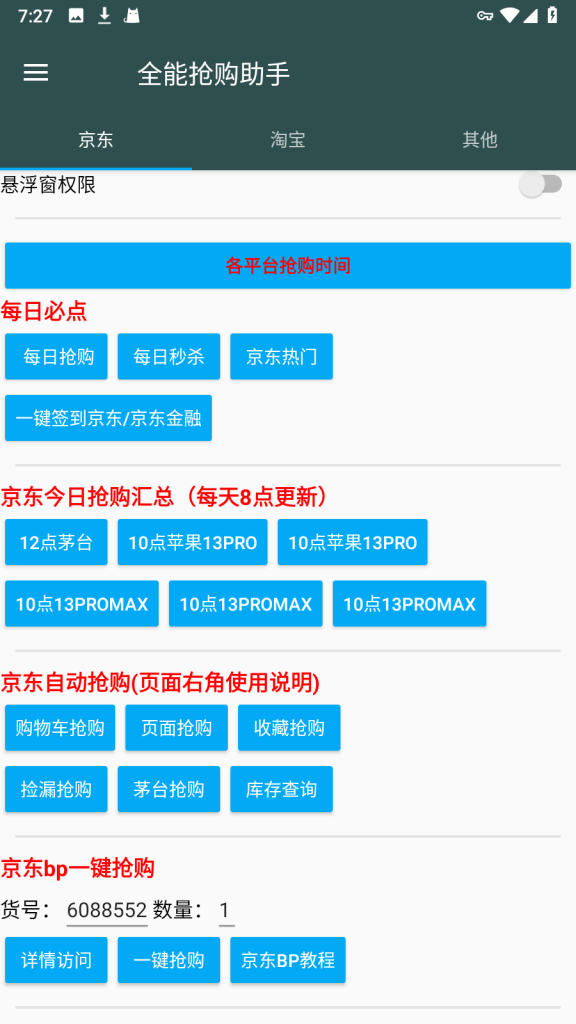 2、支持京东、淘宝、苏宁、拼多多、抖音多种模式自动抢购