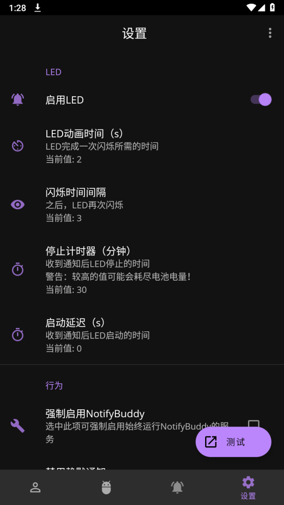 4、可通过单独设置每个软件的通知提示颜色、闪烁间隔、持续时间。不用担心烧屏现象,作者对烧屏做了保护