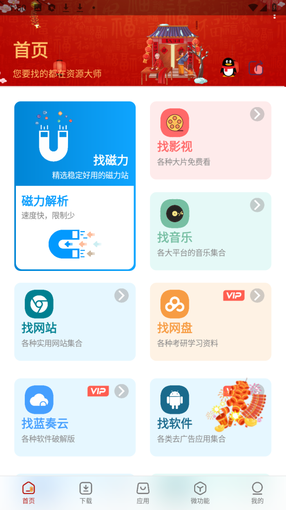 资源大师高级版(免登陆VIP特权),该版本已经破解了最新的免登陆vip特权,直接安装后就可使用所有的功能,这是一款非常实用的工具盒子类软件,拥有平时我们会遇到的各种实用功能,不仅有各种影视、音乐资源的寻找,还有PPT、微应用、壁纸、解析等等各种功能,欢迎有需要的朋友前来交流岛资源网下载!