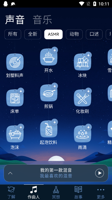1.选择喜欢的声音和音乐打造睡眠组合音乐。