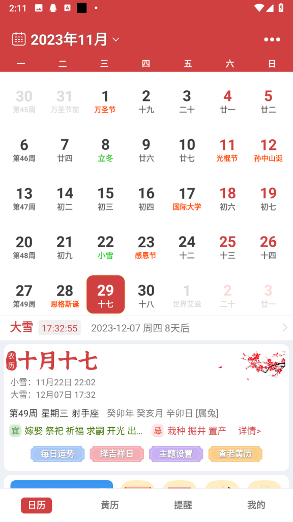 1、集万年历、农历、黄历、择日、天气预报、记事、待办、打卡、提醒、生日备忘、民俗工具等诸多功能于一体,非常适合华人使用,可以满足用户在工作、生活各方面的需求。