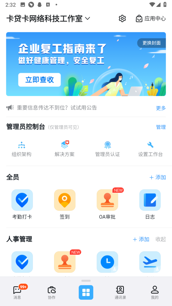4、解决企业日常办公需求,如考勤、签到、审批、日志、公告、请假、报销、出差等,同时全面支持接入企业自定义应用,让工作更简单。
