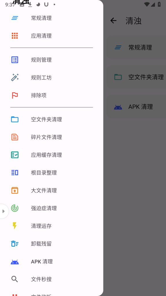 界面很简约,实用性极强的一款手机清理工具,清浊app可以通过加载任务完成所需要的清理,支持快速清理垃圾还有系统垃圾,包括卸载残留空文件夹以及应用缓存等,轻松释放手机空间,支持按照目录来清除,非常之方便。