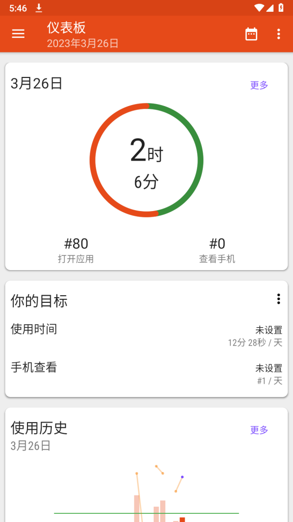 ★ 显示应用使用历史:手机您使用的应用的使用时间信息
