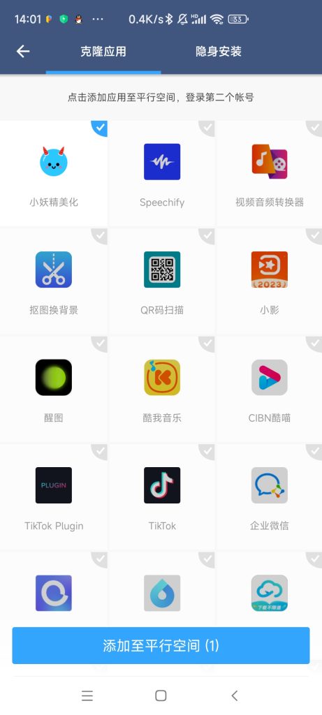 支持在手机上同时登录多个不同的账号的平行空间软件,平行空间(原双开大师)软件是个黑科技神器,它的功能很强大,支持一键快速切换账号,简单易操作,运行很稳定,相对其它软件来说整体都比较占优势。