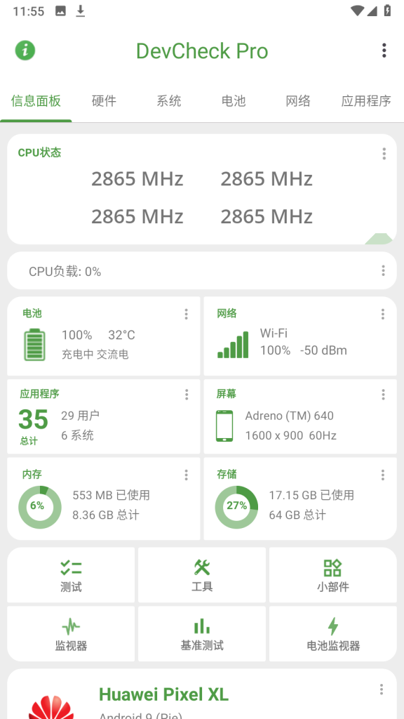 DevCheck提供了系统、硬件、电池等多方面的详细信息查看,无论是安卓版本、系统是否root,