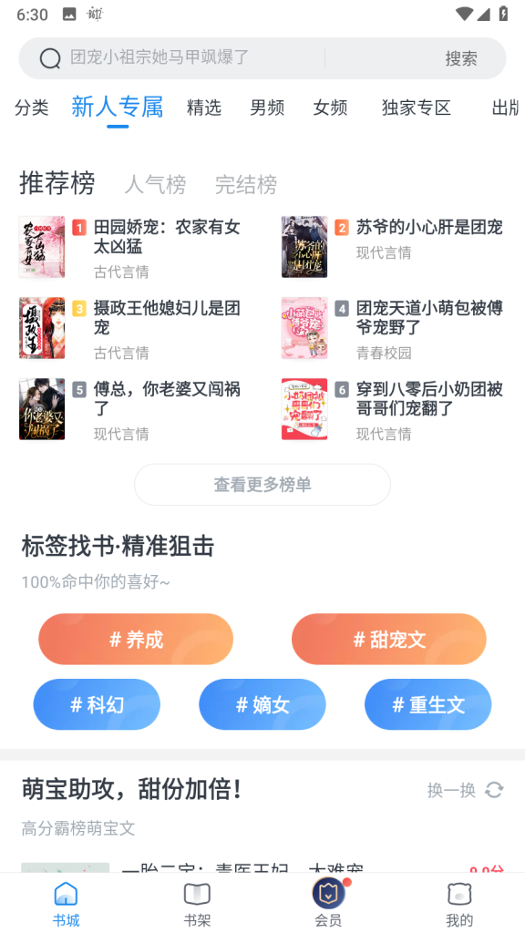1、【精选书籍】女频、男频、出版、免费小说任意看