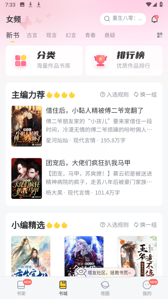 PS:如果我们曾经历网文鼎盛时期,那一定和我有一样的感触,追一本小说看上几天几夜,每日苦等更新;而今横扫各大小说网,竟陷入无书可读窘境,真的是我们对小说阅读失去热爱了吗?如果您还抱有期待,想要重拾当年熬夜追书的感觉,不如来塔读文创阁版块,这里的作者热爱写作,用心创作,他们需要向我们一样的队友,一起成长~