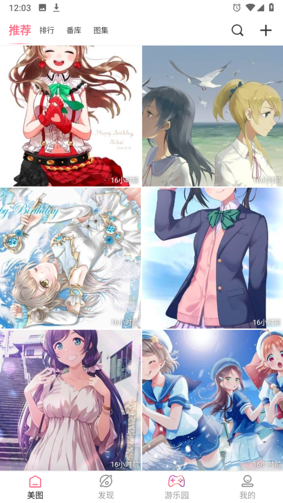 7、在APP的“美图”界面,就提供了许多动漫的高清美图