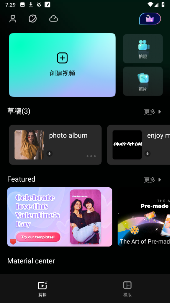 2、安卓手机视频编辑必备神器!海量创意、酷炫的滤镜、特效、贴纸、转场、字幕视频素材等你来体验