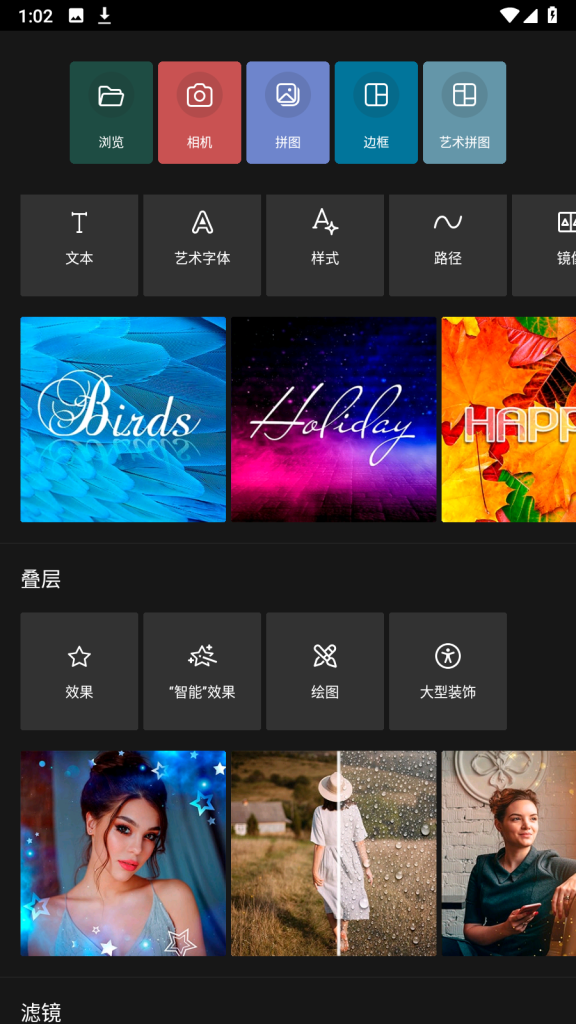 3、使用各种效果,滤镜,文本编辑和色彩增强工具以及许多其他即用型功能,使每个镜头成为完美的完整艺术作品