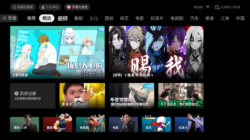 4、哔哩哔哩官方电视版叫云视听小电视,手机版/TV版的账号大会员不互通,且不支持弾幕