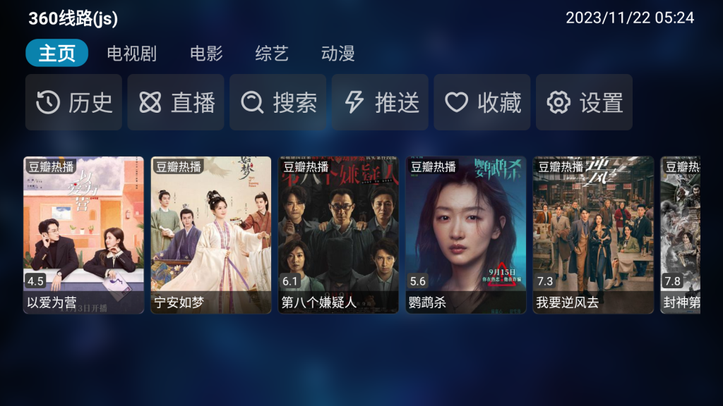 1、首页推荐:推荐热门高质量电影、电视剧、综艺等资源