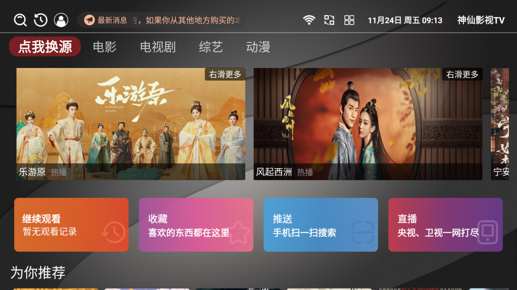 4、推荐优秀的电视和电影资源,让用户随时随地欣赏。