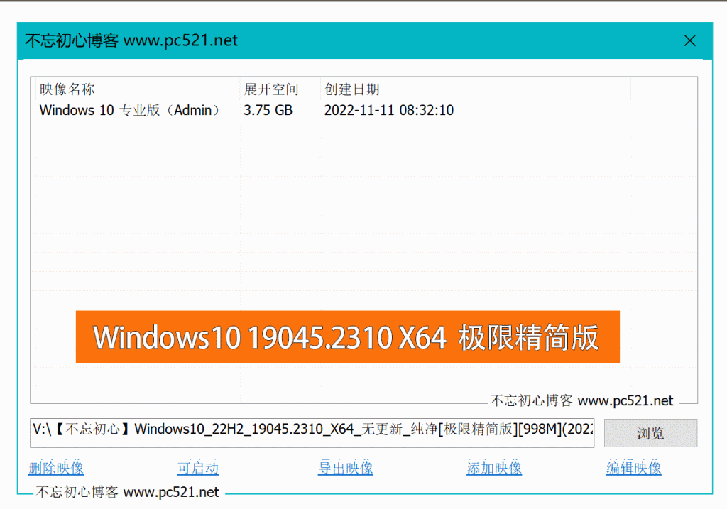 文件名: V:\【不忘初心】Windows10_22H2_19045.2310_X64_无更新_纯净[极限精简版][998M](2022.11.13).esd