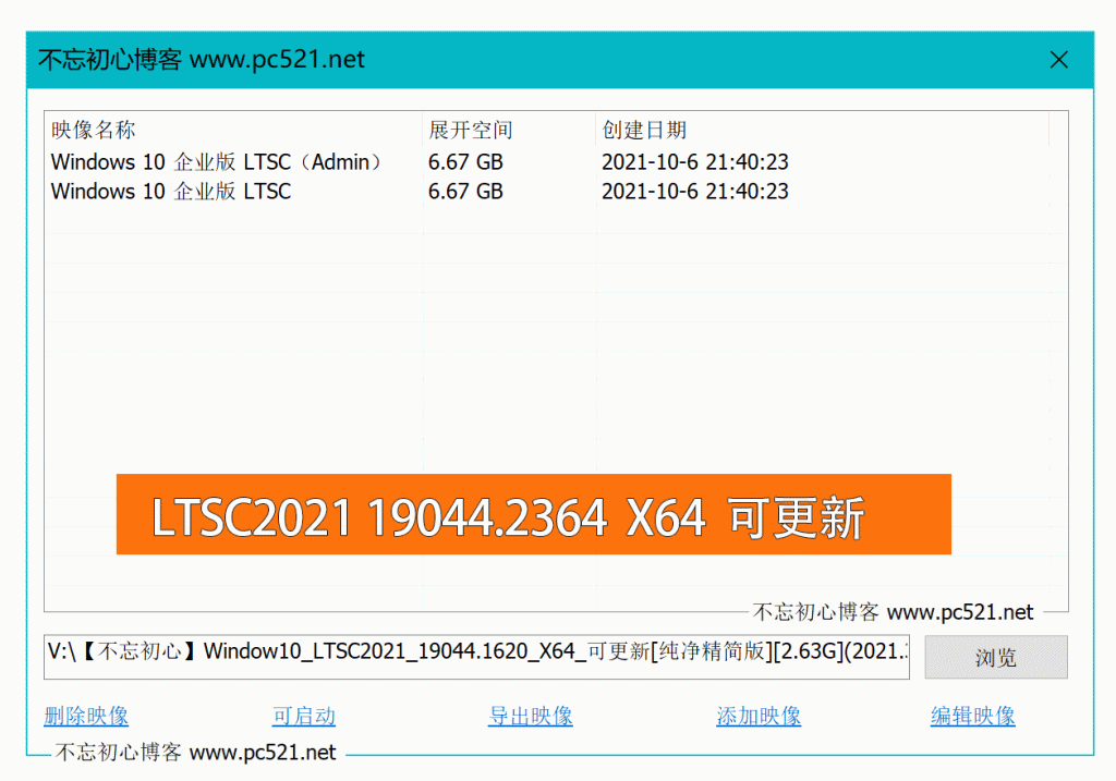 文件名: V:\【不忘初心】Window10_LTSC2021_19044.2364_X64_可更新[纯精简版][2].57G](2022.1.5).iso