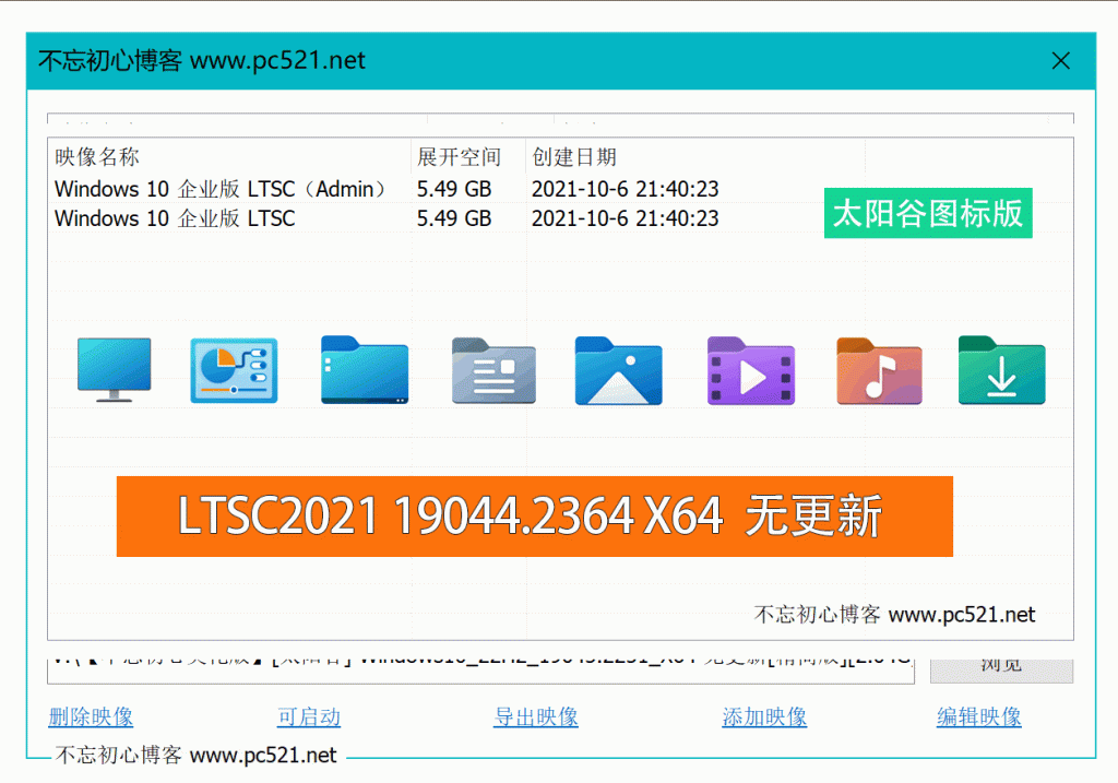 文件名: V:\【不忘初心美化版】[太阳谷] Win10_LTSC2021_19044.2364_X64_无更新[精简版][2.09G](2023.1.6).iso