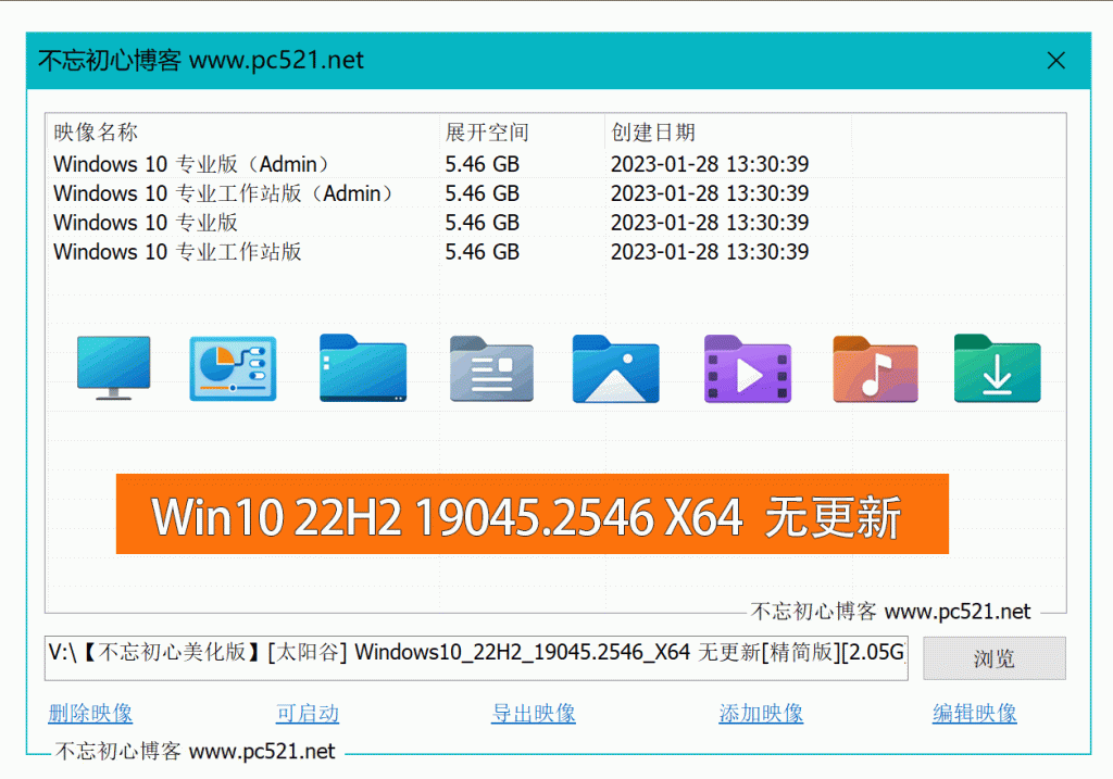 文件名: V:\【不忘初心美化版】[太阳谷] Windows10_22H2_19045.2546_X64 无更新[精简版][2.05G](2023.1.28).iso