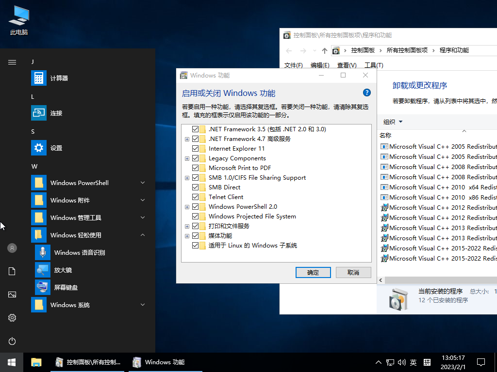 IE、ODBC、简体输入法、蓝牙、wifi、xbox驱动、bitlocker、防火墙、画图、Mstsc、触摸、人脸、平板