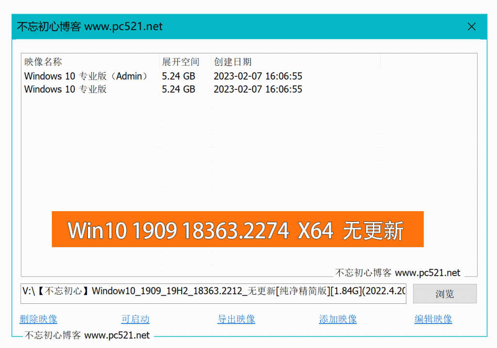 文件名: V:\【不忘初心】Window10_1909_19H2_18363.2274_无更新[纯净精简版][1.9G](2022.6.22).iso