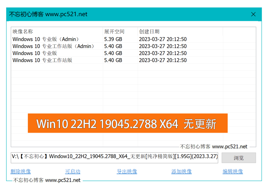 文件名: V:\【不忘初心】Window10_22H2_19045.2788_X64_无更新[纯净精简版][1.95G](2023.3.27).iso