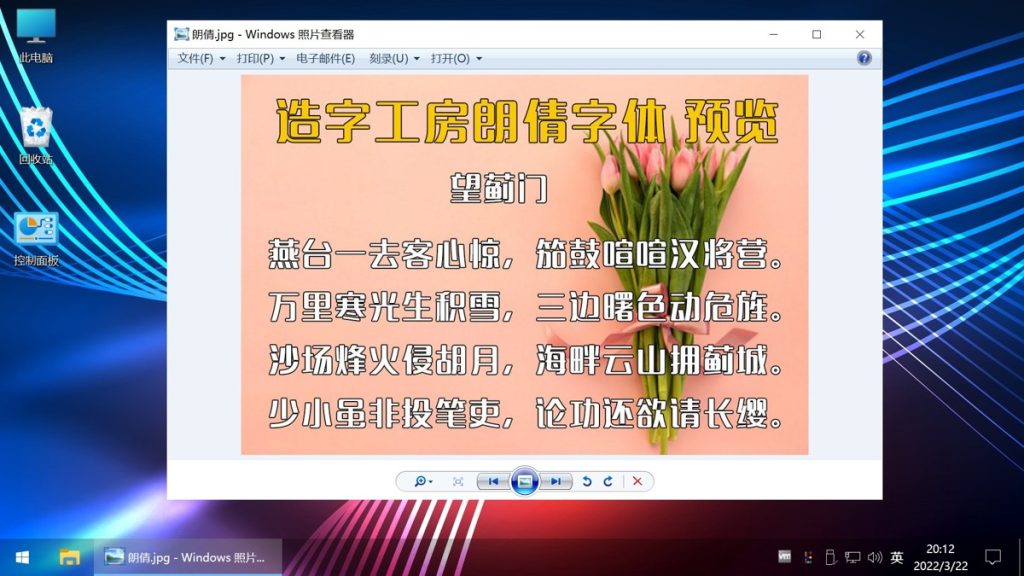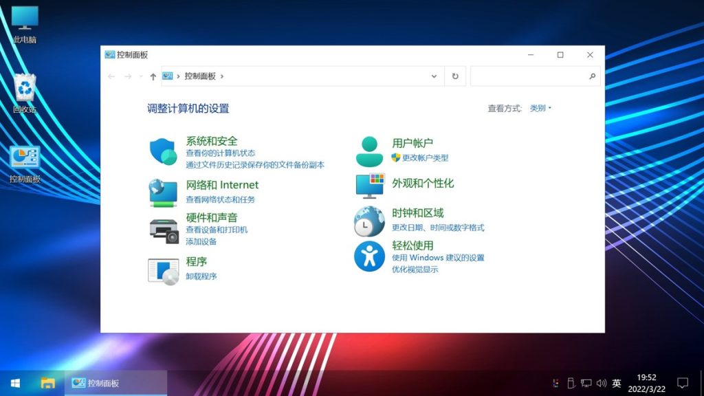 在桌面显示“控制面板”