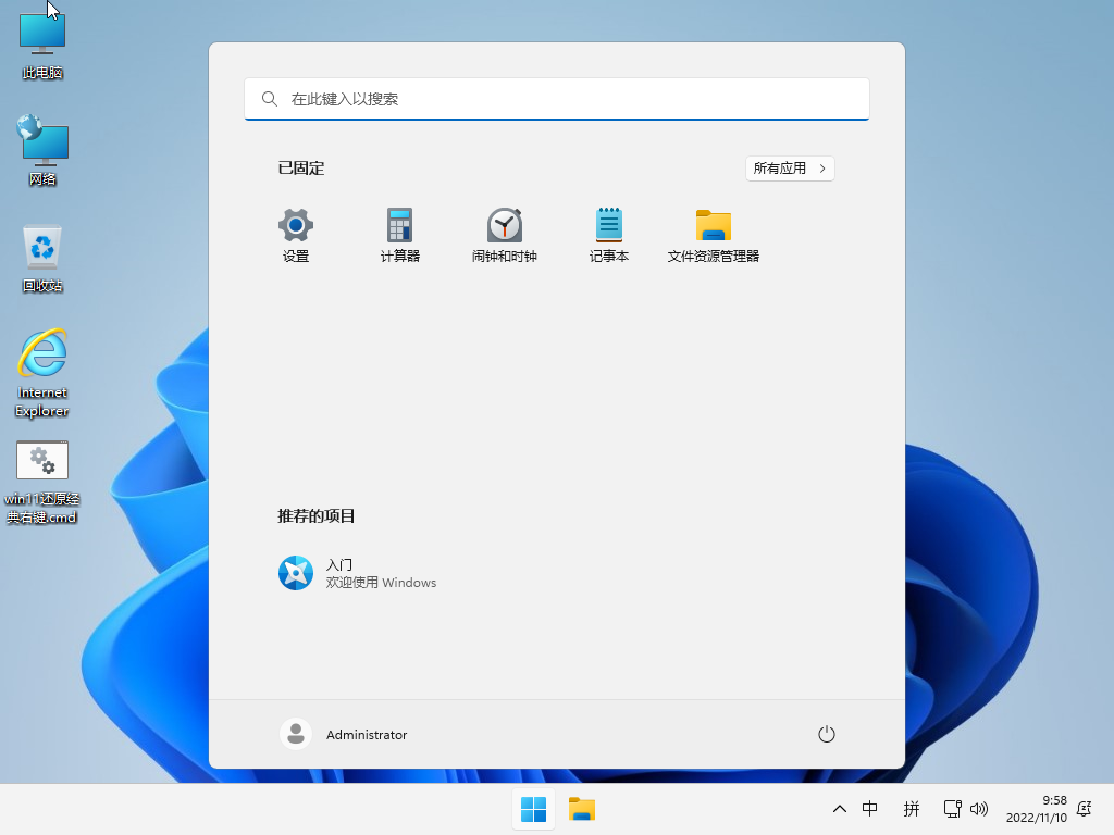 默认新右键菜单界面, 可下载”win11还原经典右键.cmd” 恢复. 无EDGE 默认IE浏览器 Linux默认打开(只支持关闭)