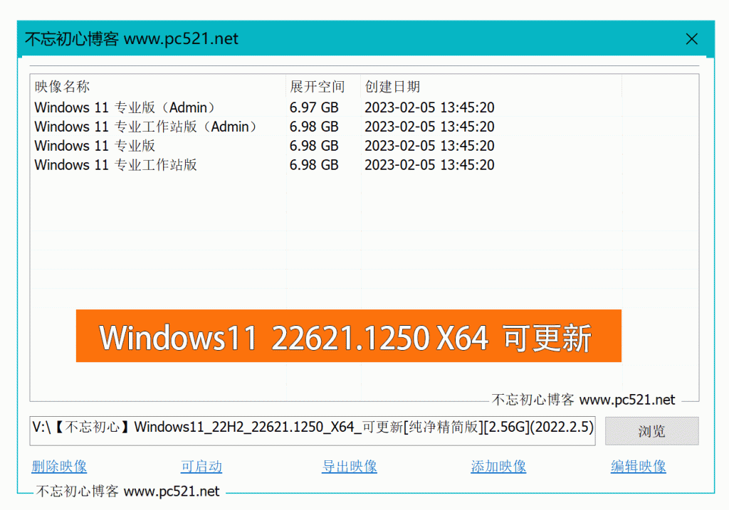 文件名: V:\【不忘初心】Windows11_22H2_22621.1250_X64_可更新[纯净精简版][2.56G](2022.2.5).iso