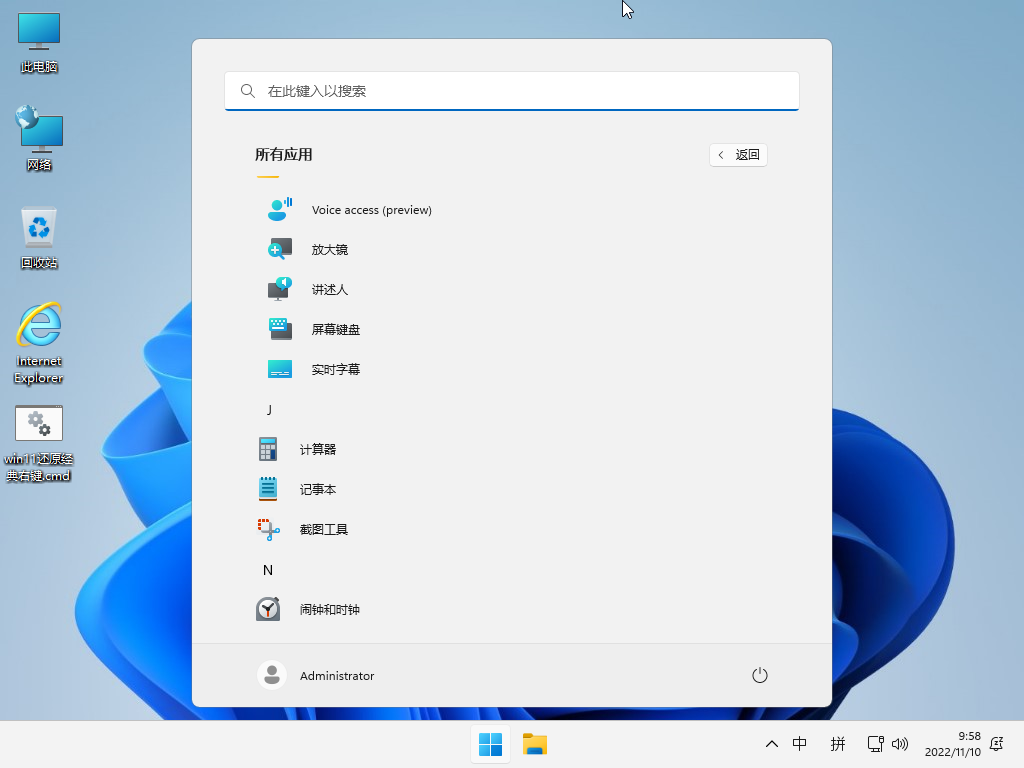 默认新右键菜单界面, 可下载”win11还原经典右键.cmd” 恢复. 无EDGE 默认IE浏览器 Linux默认打开(只支持关闭)