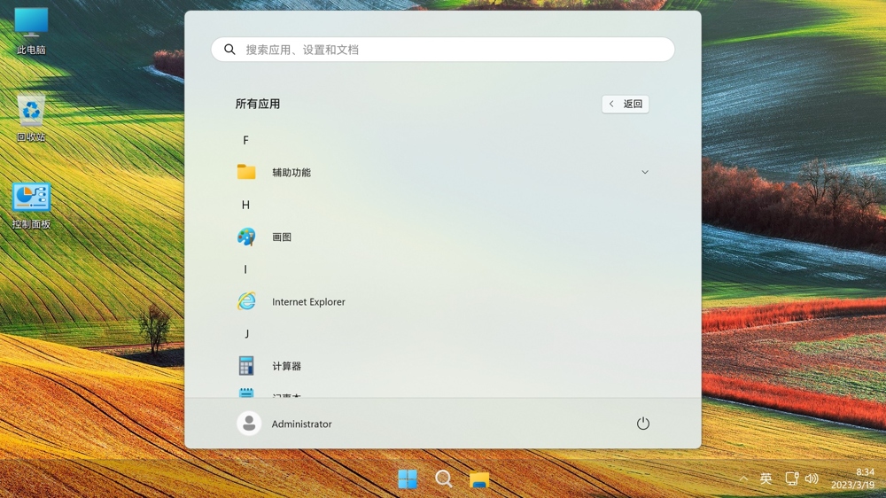 • 恢复Internet Explorer浏览器,开始菜单---所有应用 中可以打开;
