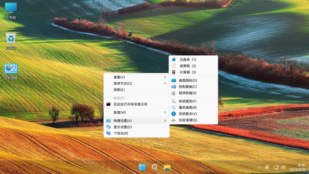 集成右键 快捷设置 包含 注册表 组策略 计算器 桌面图标 控制面板 系统服务 重启桌面 系统版本。