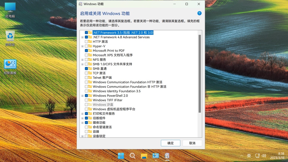 保留组件:XBOX、打印、蓝牙、指纹、共享、微软账户、搜索、计算器、屏幕投影、平板模式、BitLocker、远程桌面、NFS 、IE浏览器、画图、截图、防火墙、WMP、旧版组件 、Linux、Telnet