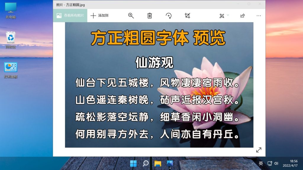 在桌面显示“控制面板”