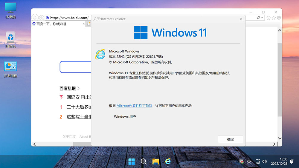 • IE主页默认设置为百度,原版是先打开微软再跳转百度;