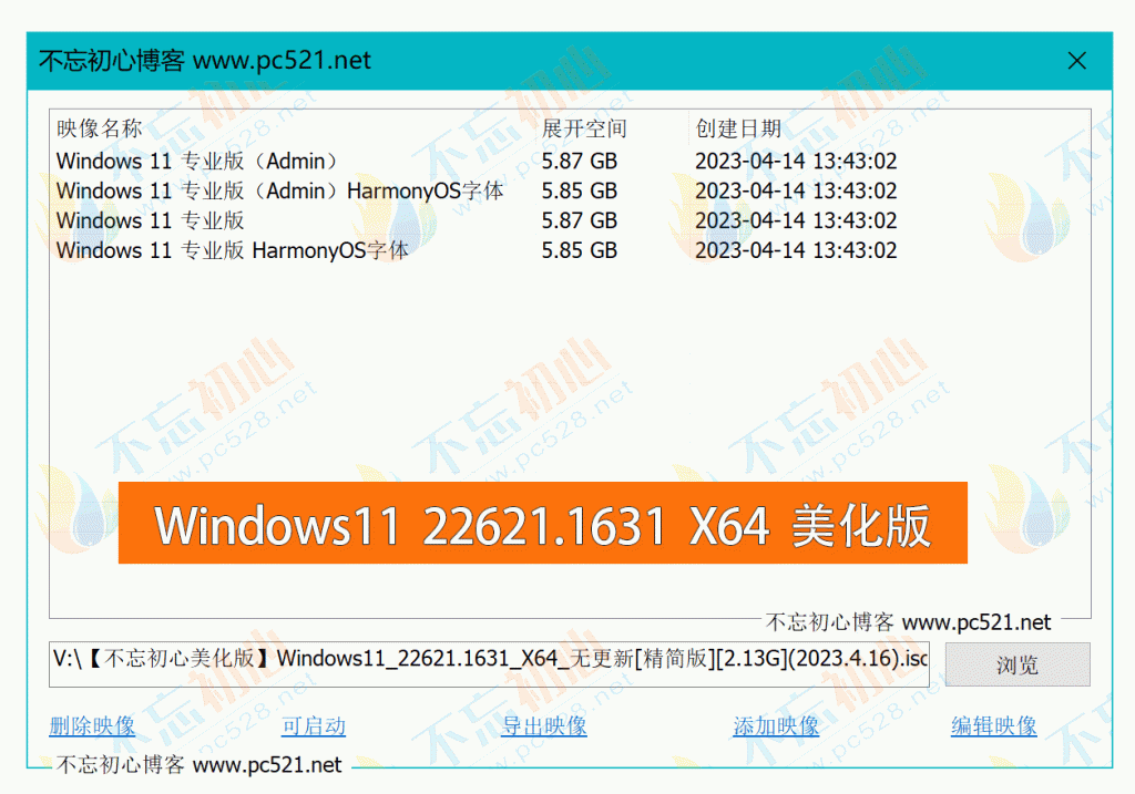 文件名: V:\【不忘初心美化版】Windows11_22621.1631_X64_无更新[精简版][2.13G](2023.4.16).iso