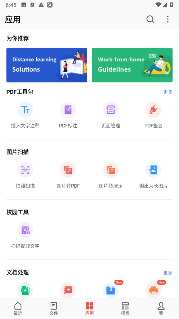 3、WPS文字:新建文字文档,提供简历、合同等模板,打开26种文字格式文档(含加密文档),智能适应手机屏幕阅读,支持智能排版,文字段落、对象属性设置、插入图片、语音朗读等编辑功能