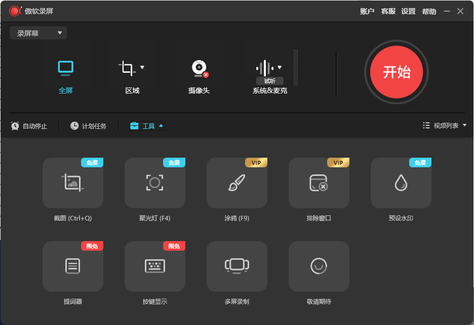 傲软录屏支持两种任务录制功能,即电脑屏幕/摄像头定时计划任务录制和跟随录制功能。