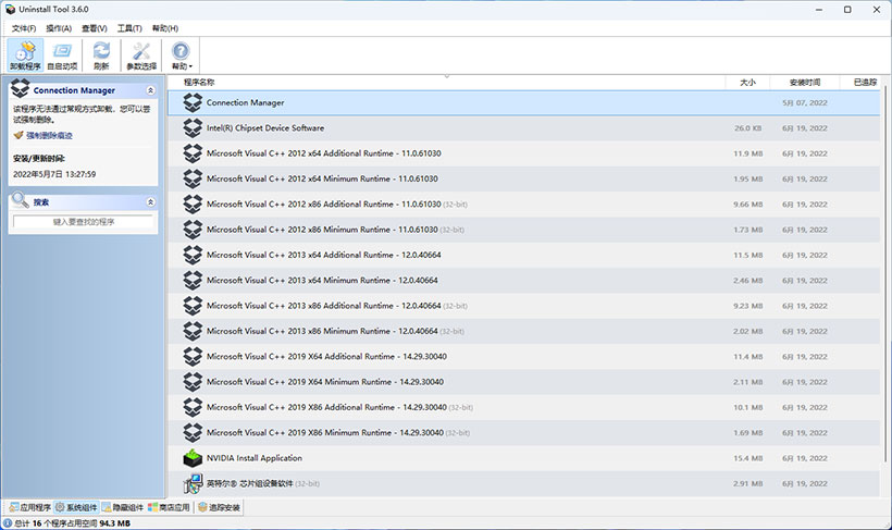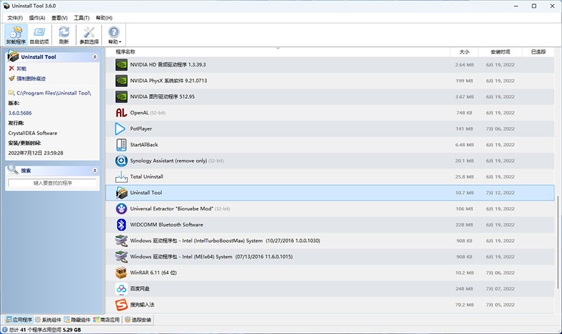 尤其是当您遇到某些应用程序因为注册表信息缺失或文件损坏无法卸载的情况时,可以使用Uninstall Tool的强制删除功能,将顽固程序及相关注册表信息、服务等清理干净,使您卸载程序更加简便、彻底,推荐下载使用。